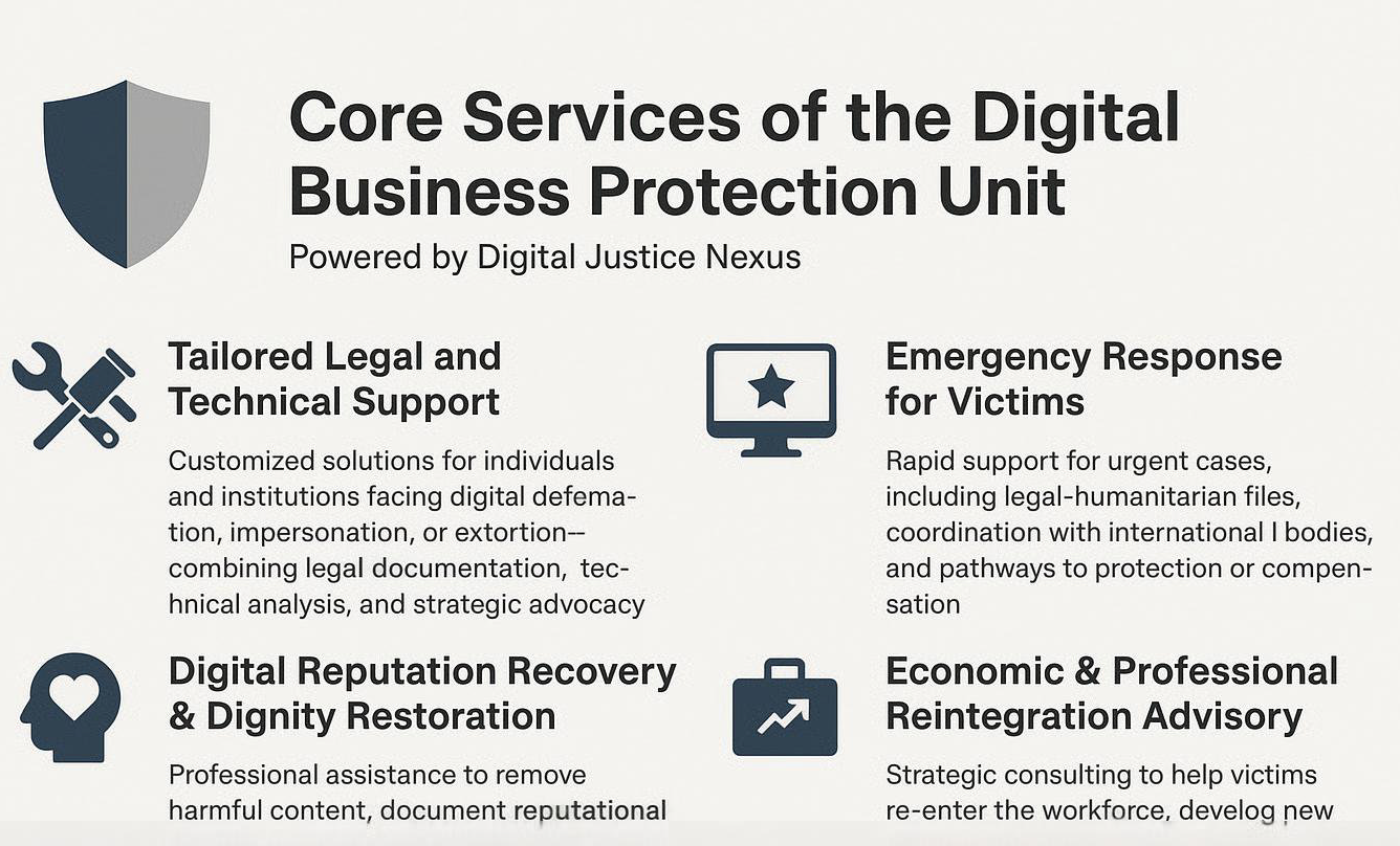 Maßgeschneiderte Lösungen, die juristisches Fachwissen und technische Analysen kombinieren, um digitale Diffamierung und Identitätsbetrug zu bekämpfen.